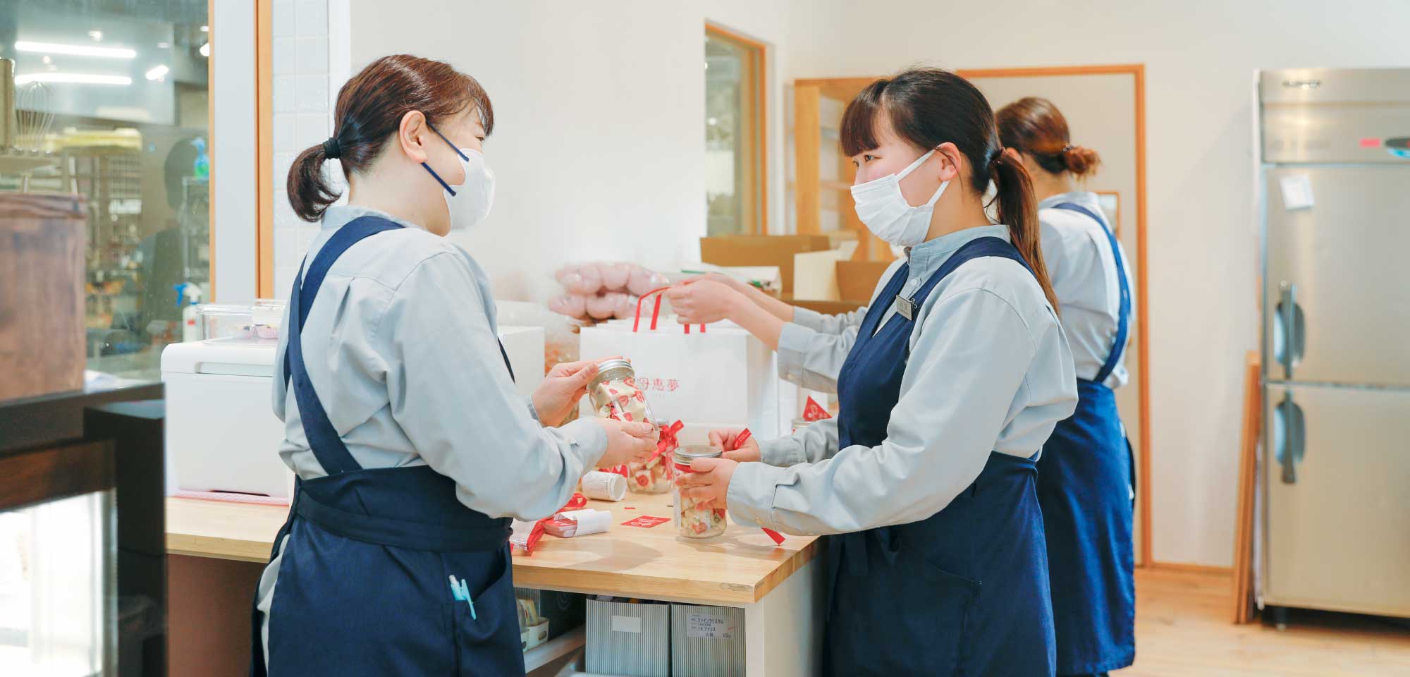 正社員になることを特に意識してはいませんでしたが、和菓子部で長く働きたいとは思っていました。そのため、「正社員に」というお声がけをいただいたときは、大変ありがたかったです。自分がどう動けば、パートタイム社員の方々が働きやすいかを考えるよう心がけるようになりました。パートタイム社員時の経験を生かし、働きやすい職場づくりにも貢献できたらとの思いで、業務に取り組んでいます。正社員の先輩方がしてくれてきたことを参考にしています。