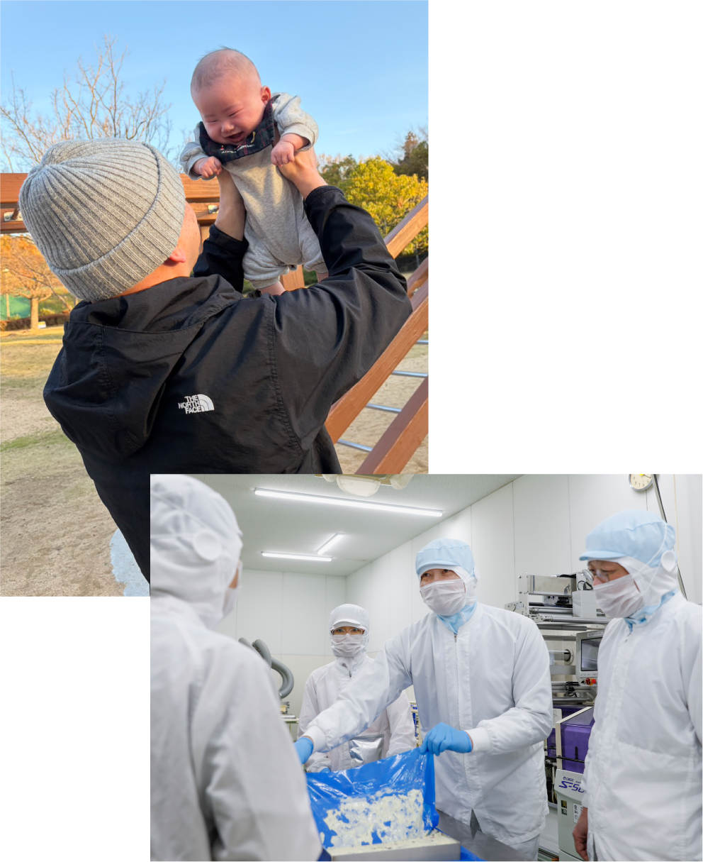 一昨年・昨年と2年連続で、男性社員の育児休業取得率100%を達成しました。それ以前は取得実績がなかったため、対象者に取得しなかった理由を確認したところ、担当業務への影響や経済的な不安があったという声がありました。そこで、日頃から取得を促すとともに、男性の育児休業に関する制度や給付金などの情報を丁寧に伝えるようにしました。また、休みが取りやすいよう、部署ごとにサポート体制も整備。繁忙期にあたる場合は休む時期を調整してもらうこともありますが、できるだけ要望に応えられるよう、単発アルバイトの活用も視野に入れています。前例ができたことで、「取りにくい」という心理的ハードルは確実に下がってきていると感じています。